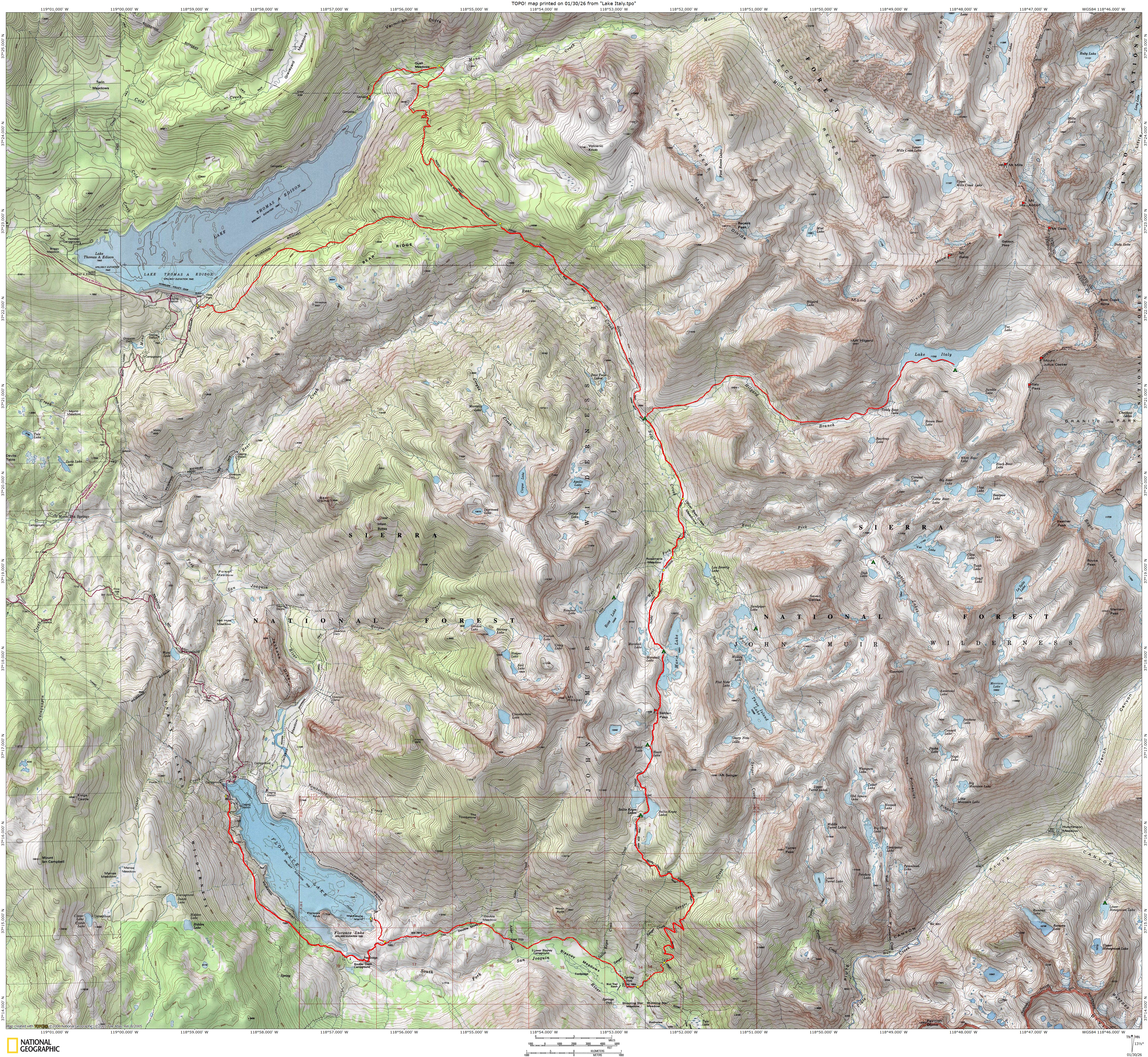 Shuttle 2 cars 12.4 miles between trailheads, road from Mono Hot Springs to Lake Edison is rough.